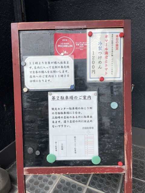 午前11時から食券が購入できて、11時20分までは外で待つスタイルです。店内はカウンターのみの9席、11時20分に開店、食券を事前に購入した人で店内は満席になります。それに続き20人程度の行列ができてました…ファン層も幅広く、女性ファンも多く訪れています。本日もカウンターと行列のお客さん合わせてその内の2割は女性のお客さんでした。さすがはミシュランガイド掲載店…恐るべしラーメン屋さんです!