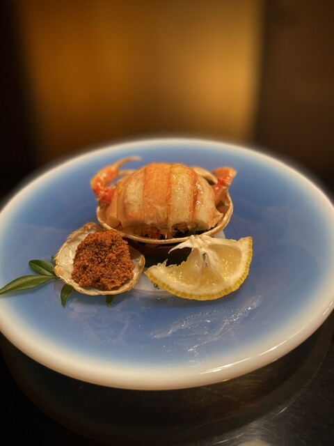 親蟹の身の甲羅詰めでした。本ずわい蟹とはまた違った濃厚な親蟹の味を土佐酢ジュレでいただきました。蟹身の一本一本が丁寧に盛り付けられています。それから外子の筋もきれいに処理してあり、外子独特の食感を心置きなく堪能することができました。