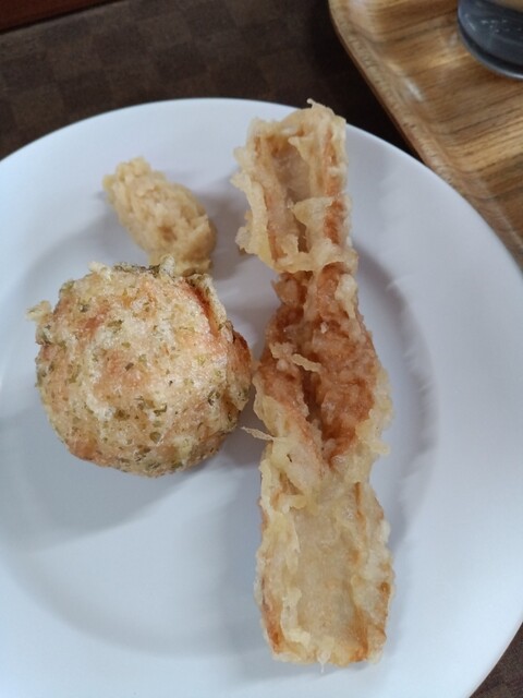 天ぷら置き場には、これもまたラッキーなことに、すぐに売り切れてしまう「じゃがいもの天ぷら(150円)」がまだたくさん残っていた。