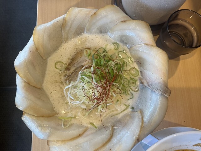 また見ての通りどんぶりにチャーシューの花が咲いてます。