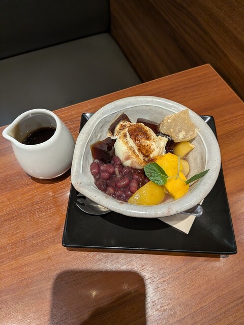 ➡寒天の代わりにコーヒーゼリーが入ったちょっとビターなあんみつ!黒蜜と相性バツグンです◎