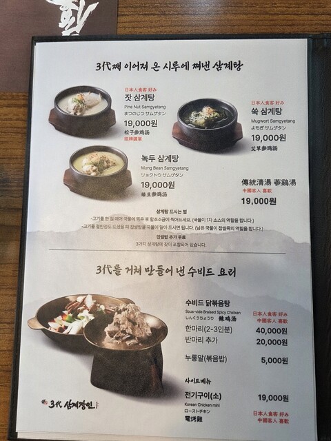 韓国人は暑い夏に気力を回復するためにサムゲタンを食べたりします。