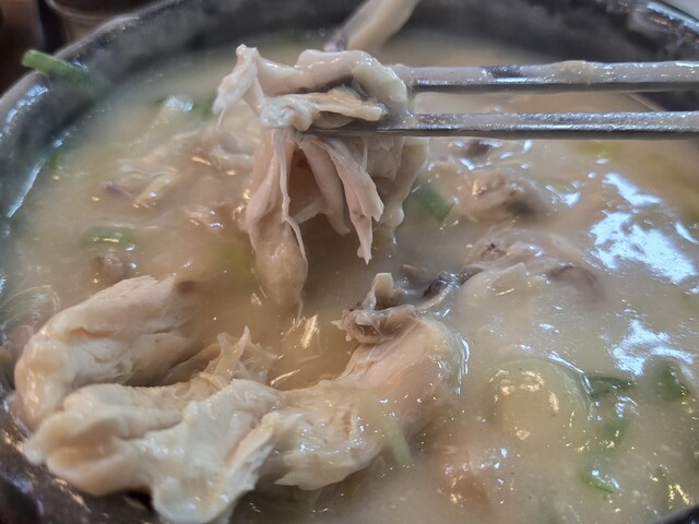 参鶏湯の鶏肉がとても柔らかいです。 箸であてるだけで食べやすく溶けます。