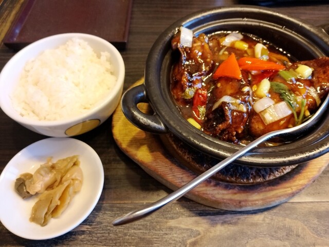 大粒牡蠣の宮保炒め‼️&ご飯&ザーサイ付き