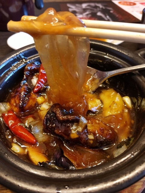 つるっとした喉越しの良い太麺のくずきりも、その甘辛タレを吸いまくってうまうま♥️