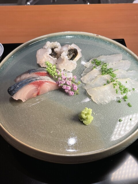 訪れるとまず、街の喧騒を忘れさせる静かな雰囲気に包まれます。白木のカウンターから見える料理人の所作は端正で、器や掛け軸、花のしつらえが季節感を自然に引き立てていました。料理は月替わりのおまかせコース。出汁の澄んだ香りと味わいに始まり、八寸、造り、椀、焼物、揚物、強肴、土鍋ごはん、抹茶と干菓子へと流れていく構成はとても自然で心地よいものでした。造りでは旬の魚を脂の質や食感に合わせた調理で出し、焼物の白甘鯛は皮目の香ばしさと身のふっくら感が絶妙。亀岡牛の肩ロースは火入れが素晴らしく、赤身の旨みを真っ直ぐに伝えてくれる一皿でした。香り付けは控えめに留められており、肉そのものの甘さが際立ちます。食事は魚沼産コシヒカリを使った土鍋ごはん。いくらや松茸の餡が添えられ、米本来の甘みと香りが主役としてしっかり残り、最後まで満足感を高めてくれます。抹茶と干菓子の締めも心を落ち着かせ、料理と空間を含めた一つの体験が完成しました。