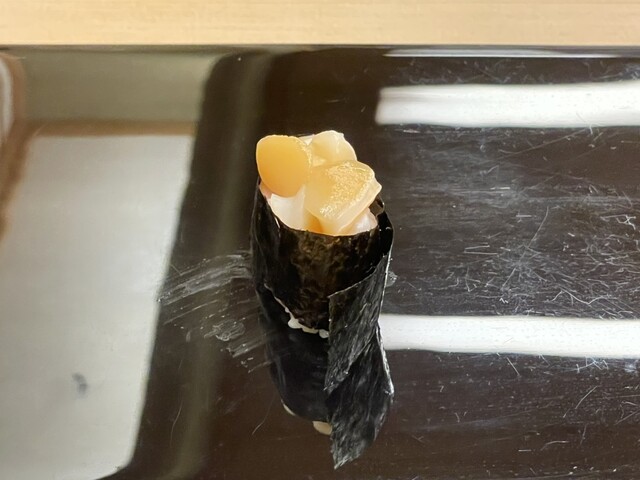 赤身は鉄分の余韻が長く残り、シャリの酸味と見事に調和。中トロは繊維の細やかさと温度管理が完璧で、脂がふわりと溶けるように消えていきます。蛇腹の大トロは脂と酸味の融合が美しく、青空氏の基礎力と信念が一貫して感じられる逸品でした。