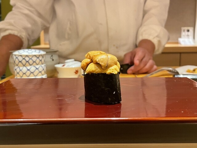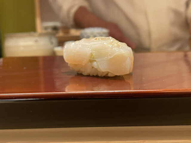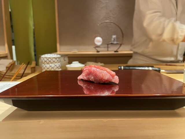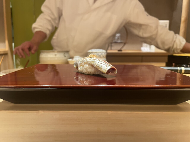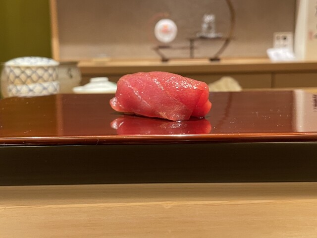 銀座一丁目駅から徒歩2分ほどの場所にある完全予約制の鮨店。ビルの9階にひっそりと構える店内は、白木のカウンター11席のみ。照明を落とした静かな空間で、余計な音がなく、職人の所作と魚の香りに集中できる。大将は海外での経験も持ち、魚の扱いと温度設計に細やかな感性を感じる。