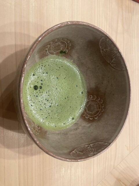 握りに入ると、シャリは雪ほたかを使い、赤酢2種。千葉県銚子産本鮪大トロは隠し包丁が入り、口に入れるとすっとほどけます。墨烏賊は塩と酢橘で、歯切れがよく、口の中が軽くなります。春子鯛は酢橘が控えめに効き、甘みが前に出ます。喉黒の昆布〆は炙りによる香ばしさと昆布の塩気が合わさり、噛むほどに味が増していきました。漬鮪はからしを使い、赤身の旨みを引き立てています。トロ炭炙りは塩で仕上げられ、炙りの香ばしさと脂の甘さが素直に伝わります。牡丹海老は炙ることで甘みが強くなり、その後に雲丹、和牛雲丹と続きます。和牛雲丹は岩手牛サーローインを使い、脂の甘さは十分に感じられますが、量が抑えられているため食べ進めやすいです。締めのおはぎ、甘味のとちあいかとシャインマスカット、抹茶まで含めて、最後まで考えられた構成でした。