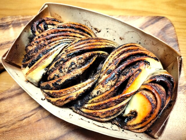 チョコブレッドはチョコレートがしっかりと感じられる三つ編みパン。ストライプが美しい。