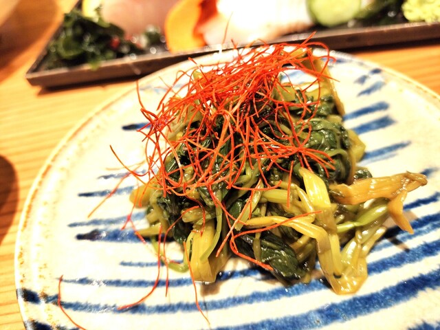 藁焼きした「空心菜の香りおひたし」は香りが鼻に抜ける。