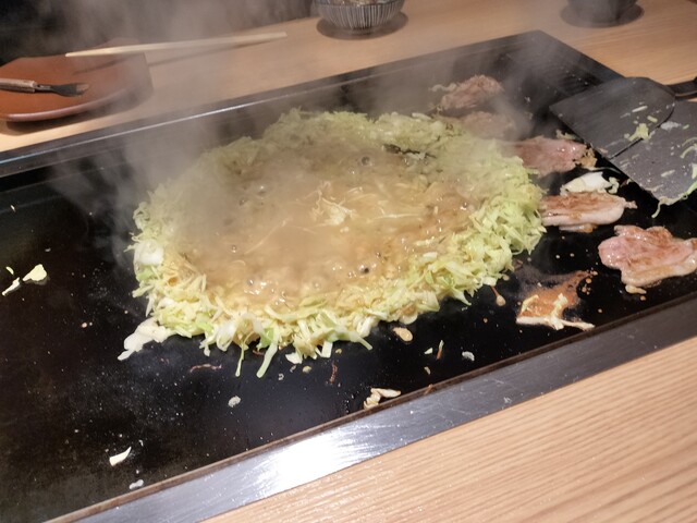 もんじゃなど鉄板を使用するメニューはスタッフさんが丁寧に焼いてくれるので、ある意味エンターテイメントを目の前で見せてもらえる気分。もんじゃ初体験の人でも安心して任せられるのが嬉しいポイントだ。