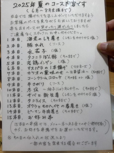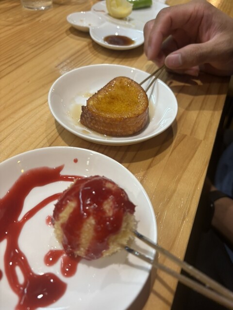 15本食べた後に、単品でモッツァレラチーズとアイスクリームの串揚げを追加して17本食べれました