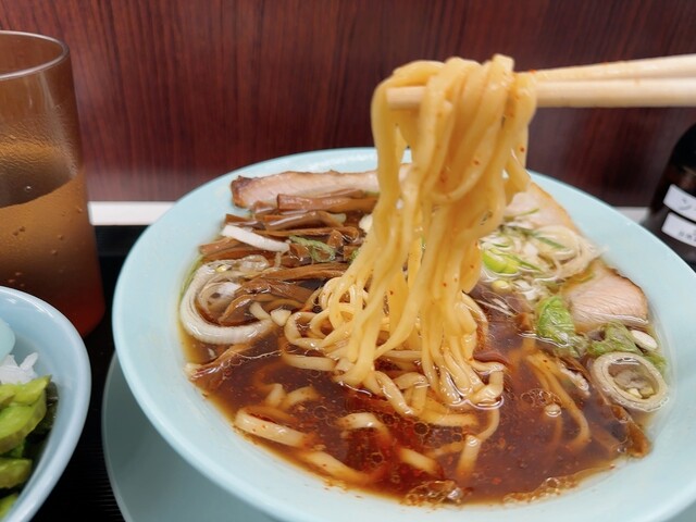 麺は中太ちぢれ麺でもちもちしていてスープとよく絡んでいました。