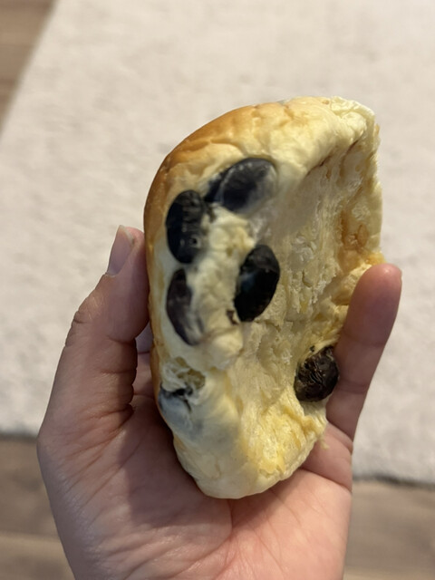 パンはキメが細かくてしっとり。黒豆はじっくり煮込んでいるのでなかまでふっくらやわらかく、ブリブリ。