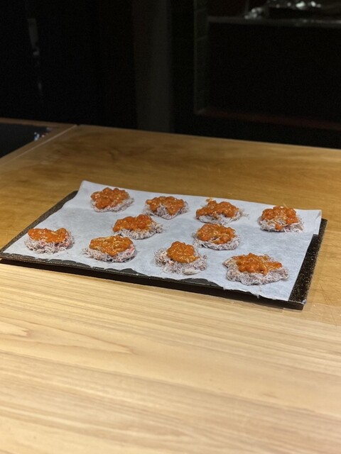 この日は偶然にも勢子蟹が入荷したため、特別に提供されました。本来はメスの漁が12月末で終了するため、季節限定の超希少な一貫でした。