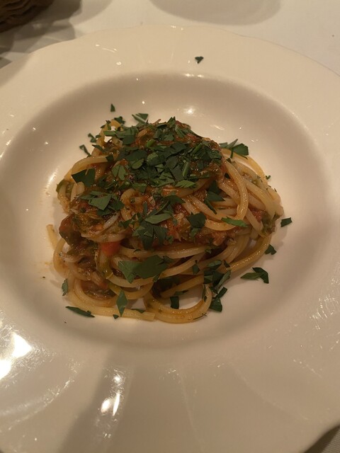 こちらもとてもシンプル。イカスミ特有の濃厚さと、イカのプリッとした食感が心地よく、重たすぎず軽すぎず、絶妙なバランス。見た目は真っ黒でも、後味はすっきりとしていて、最後まで美味しくいただけました。