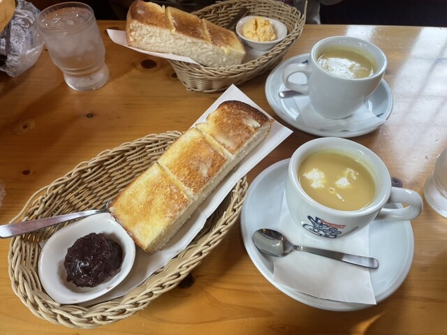 今回はコーンスープを頼み、小豆トーストを選びました。トーストにはマーガリンが塗ってあります。パンはローブパンにも変更可能だそうです。