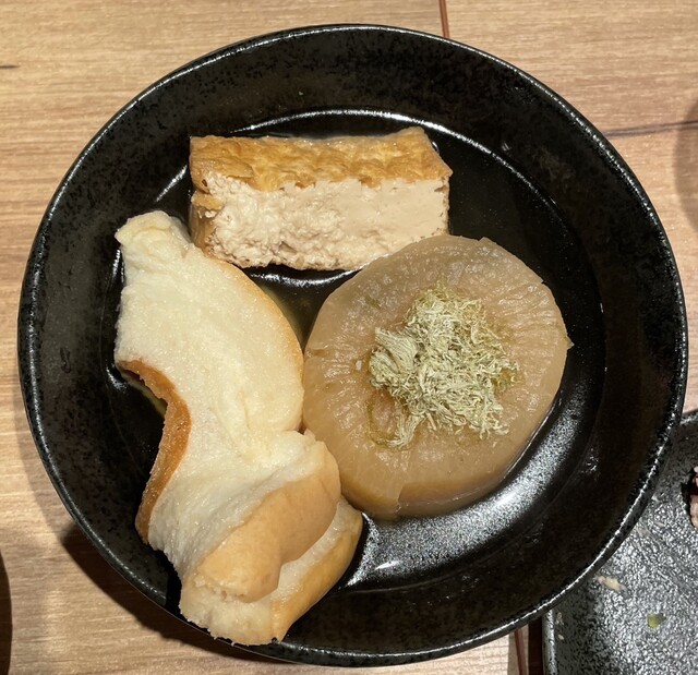 大根が分厚くて染み染み!厚揚げ、麩も口に入れるとジュワッと出汁が広がります。