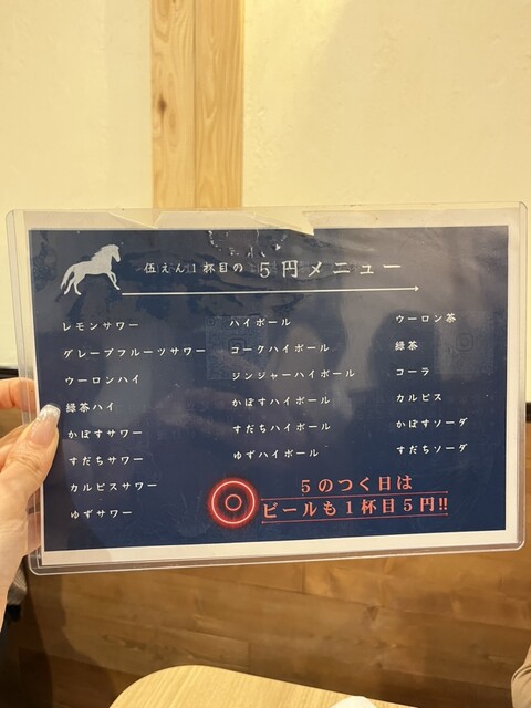 まず驚いたのは、ドリンク一杯目が“5円”というユニークなサービス!思わず笑顔になってしまうお得感です。