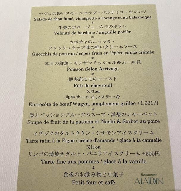 サービス料10%込みでお会計は一人2万円弱。広尾という立地でこの内容、ワインペアリングも付けてこの価格は、奇跡的とも言えるコストパフォーマンスではないでしょうか。ランチはさらにお手頃のようで、近所にあれば通いたくなる一軒でした。