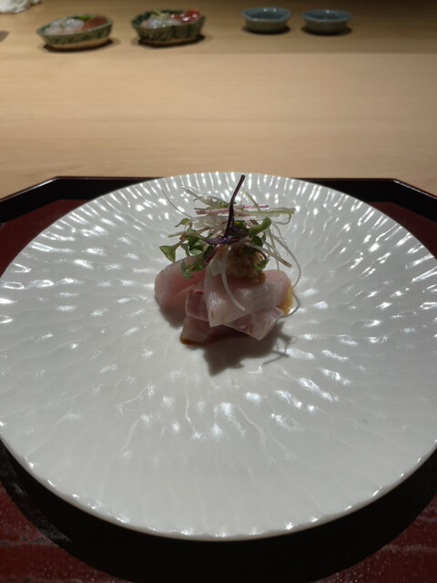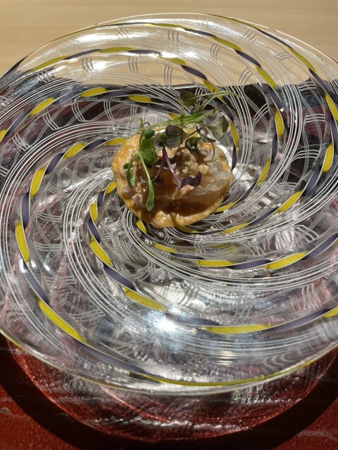 一品目は、柚子の中で百合根ともち米を蒸し、その上に炭火で炙った白子を重ねたもの。白子の香ばしい旨味と柚子の香り、百合根ともち米のやさしい甘みが重なり、冒頭から強い印象を残します。続く赤ナマコは、しっかりした歯応えがありつつも無理なく噛み切れる絶妙な食感。ズワイガニの真丈は、すり身というよりカニ肉の質感を豊かに残した仕立てで、「カニを食べている」満足感が際立ちます。