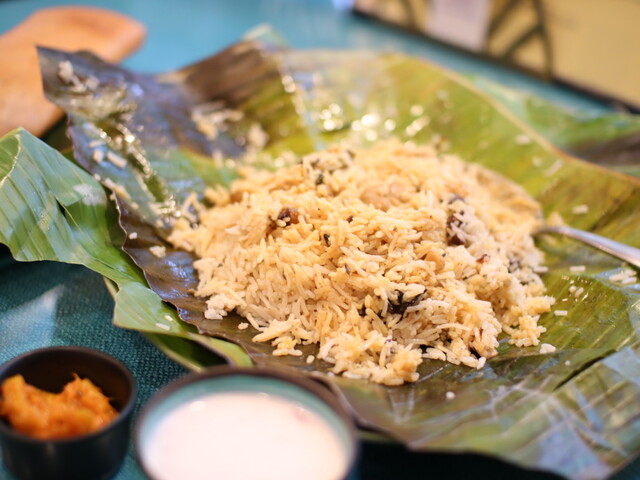 1番人気の『天然海老のドーサ』と『日替わりビリヤニ』(本日は宮崎県地鶏のビリヤニ)。