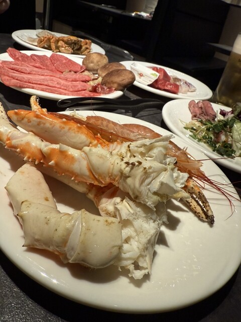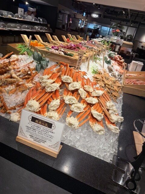 様々な種類の蟹はもちろん赤海老も美味しく、お刺身も食べ放題だと期待していなかったのですがとても美味しかったです。