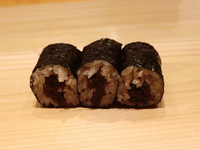 海苔の香りに負けない甘みと厚みのあるネタがしっかり主張してきます。