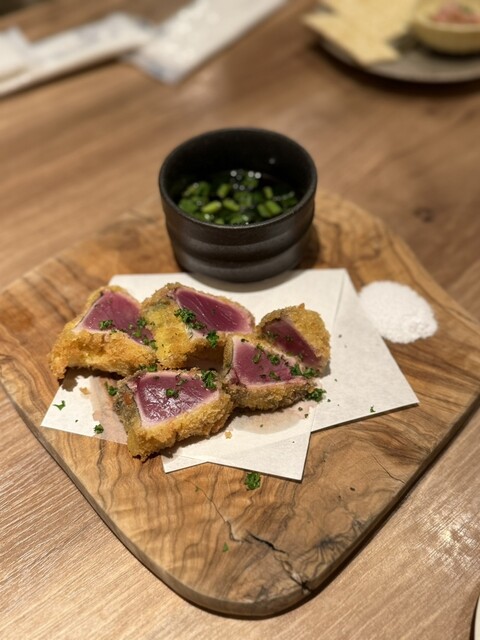 まず感動したのは、お酒に合う料理ばかりという点。しかも、一品一品が驚くほど美味しく、今まで訪れた居酒屋の中でも個人的にはダントツの美味しさでした。特に印象的だったのが「カツオを漁師だれで」。新鮮なカツオに特製の漁師だれが絡み、お酒が進みます。これはまさに絶品!