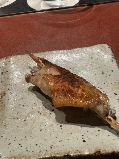 焼き鳥は高坂鶏の手羽元、弾力のある食感で噛めば噛むほど美味しく自家製の酢橘胡椒はパンチがあるが爽やか。