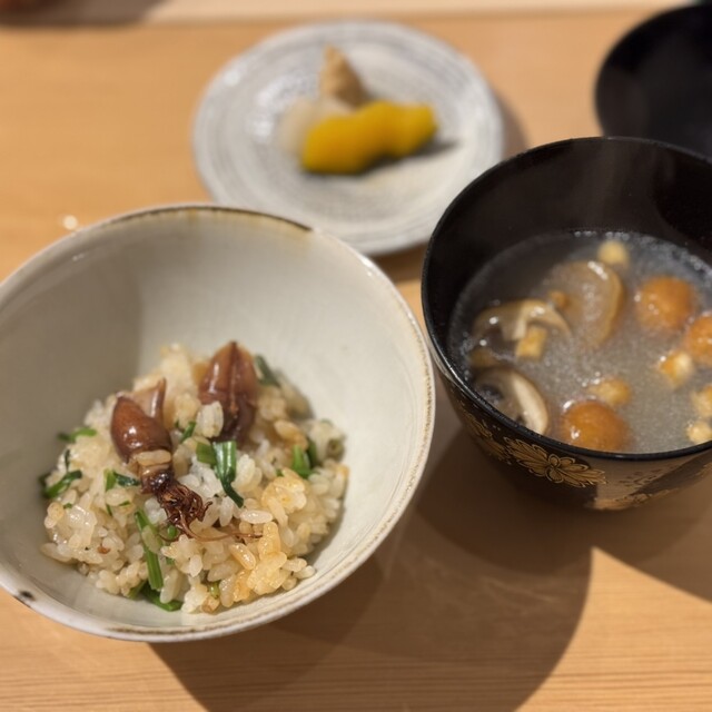 凌ぎは名残りの鳥貝、鳥貝は軽く炙ってあり甘みと旨みが凝縮しており糸もずくのお粥とベストマッチ!ほっこりとお腹もおちつく…