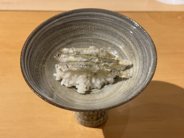 凌ぎの七尾湾で獲れた稚鮎の唐揚げは煮えばなの上にトッピングされており絶妙な塩加減で香ばしく美味しかったです。