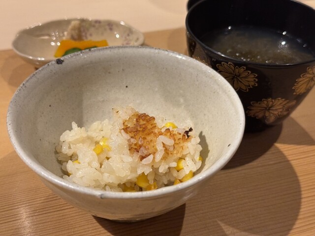 〆の土鍋ご飯は毎年楽しみにしているとうもろこしご飯