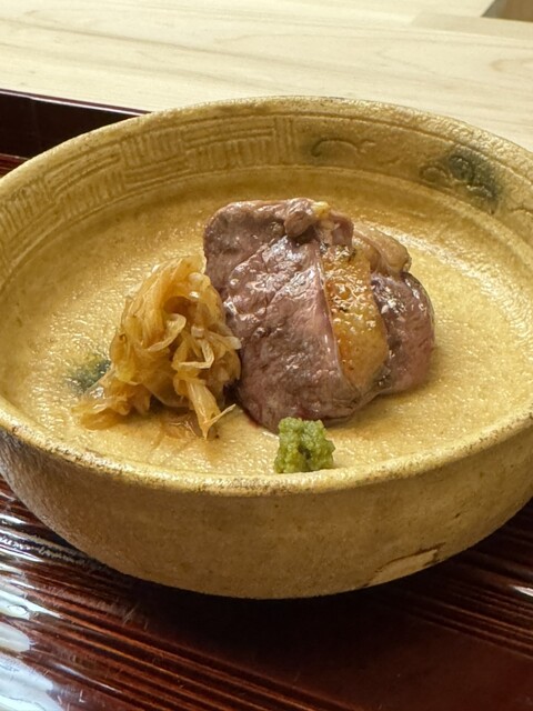 椀物はズワイ蟹の真薯。瑞々しい蟹身にコクのある蟹味噌をうき粉を使って作られておりサラッとして素材のお味が引き立ち素晴らしい。白木耳はシャキッと食感が良く鰹出汁が優しく超絶美味しい。
