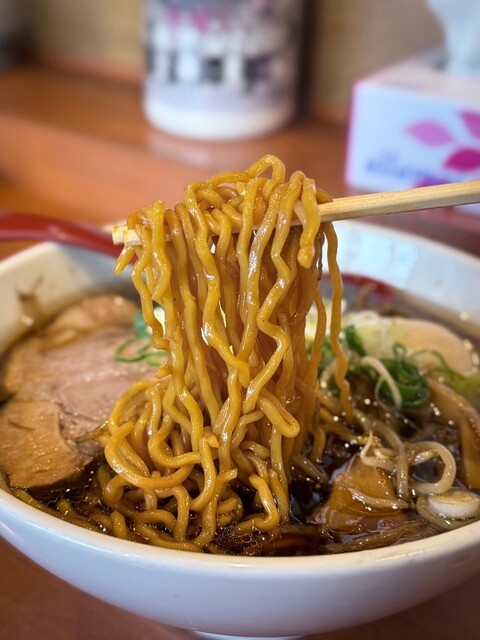 箸で持ち上げてスープをまとった麺のビジュアルは