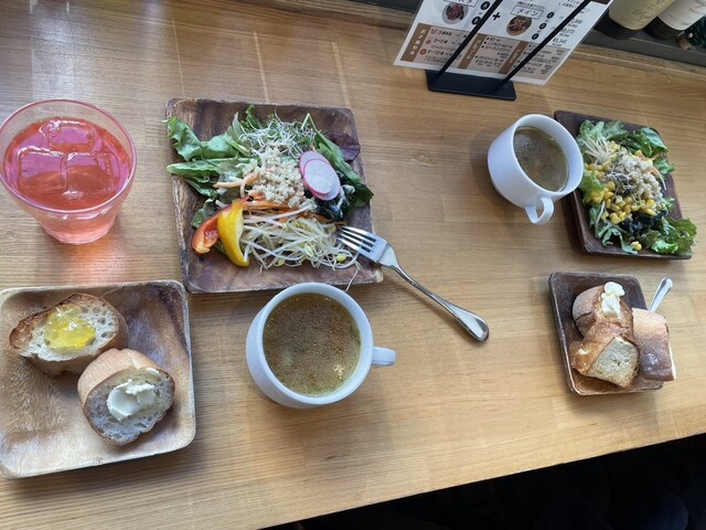 スープもおかわり自由で野菜がたくさん入ってて、とても美味しいスープ、ドリンクもアイスもホットもたくさん種類があって、すべて大満足で、お腹いっぱいになりました!