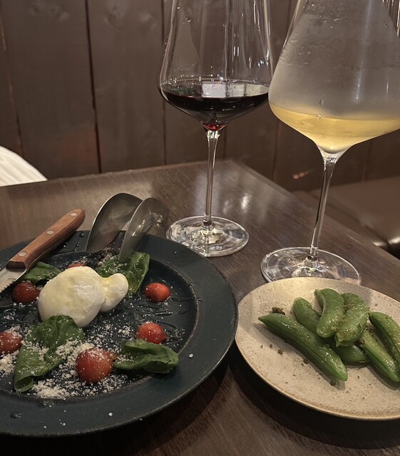 到着してまず驚いたのは、スタッフのサービスの質の高さです。1軒目でペアリングをいただいたことを何気なく伝えたところ、「ではその流れに合うように」と、今の味覚や気分に合わせてワインをセレクトしてくださいました。こういった細やかな配慮が本当に嬉しく、ただ料理をいただくだけではない豊かな体験になります。
