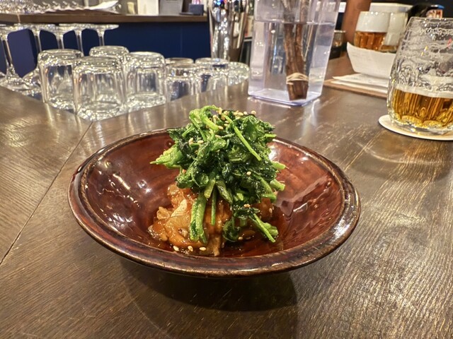 クリームチーズ、干し芋、揚げベーコンといった一見すると個性的な素材の組み合わせですが、それぞれが主張しすぎず、絶妙なバランスでまとまっていました。甘みと塩気のバランスが心地よく、ビールとの相性も抜群。盛り付けも立体的で遊び心があり、見た目からも楽しめました。