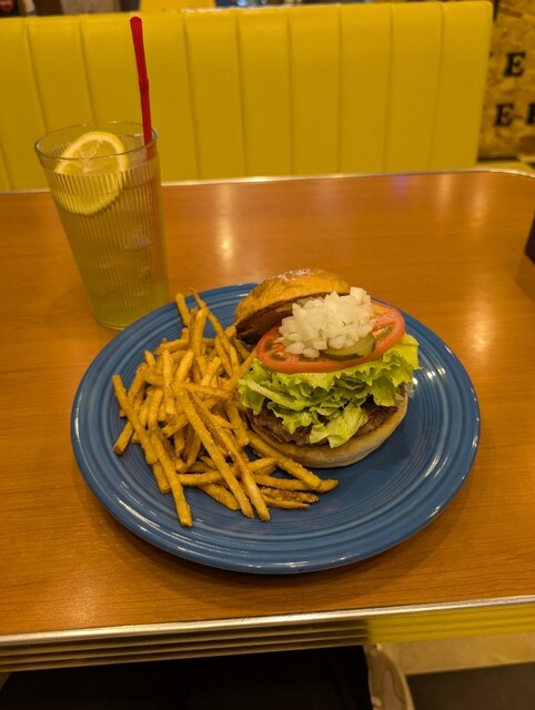 いつもはテイクアウトなのですが、電車待ちで開店と同時に入店ハンバーガーを頼みました。