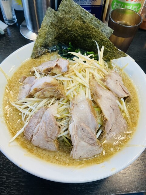 先週末から仕事頑張った感があったので、今日はネギ味噌チャーシュー並(1,290円)に野菜トッピング(190円)を券売機で購入。