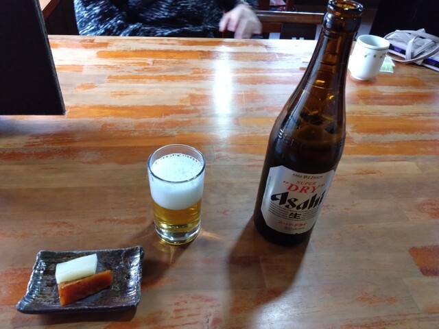 花梨糖をツマミにラガービールを飲みながら、そばを待つ、そば登場、そばを小皿に盛りつけ...