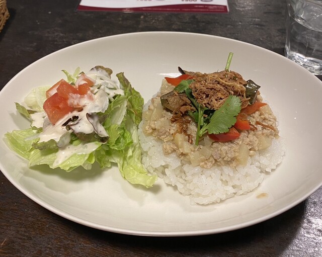 階段を降りてドアを開ければジャズが流れる趣のある空間。ランチセットはドライグリーンカレー、食後にカフェオレをいただきました。lemon dropのケーキがあるとのことでモンブランも追加で注文。今度はライブのあるときに行ってみたい⭐︎