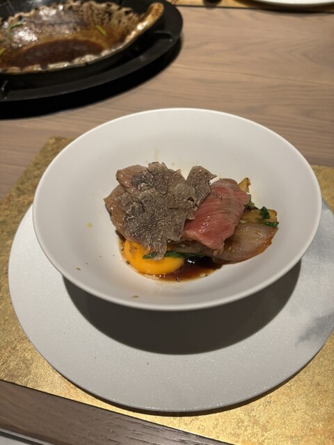 仕上げに目の前でトリュフをかけてくれる演出も贅沢で、香り空最高。また余ったすき焼きのタレにご飯を入れて食べる〆まで!!