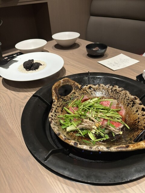 そしてフルーツ玉ねぎと金沢せりのトリュフすき焼き。これまた絶品、、、