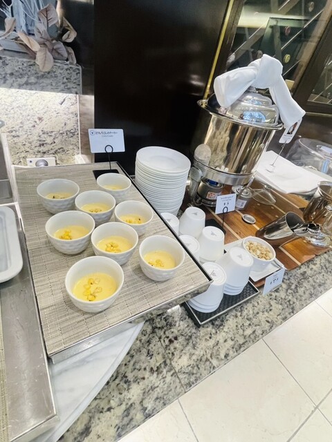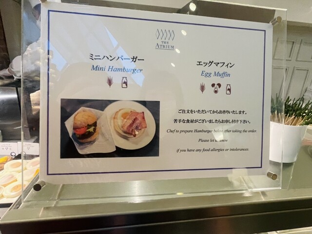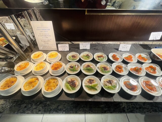トリュフオムレツ、きのこのエッグベネディクト、メロン、柿、エッグマフィン、チーズハンバーグ、マグロ、サーモン、だし巻き卵、お味噌汁、コーンスープ、パンオレ、チョコデニッシュ、卵サンド、カツサンド、チーズ三種、生ハム、春巻き、フレンチトースト、かぼちゃツナグラタン