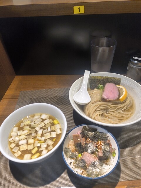 塩つけ麺1480円と特製860円にトリュフ温玉ご飯450円の...