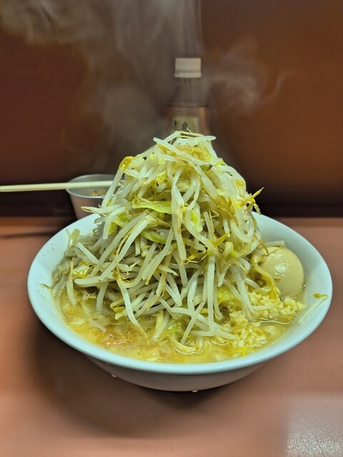 直系二郎屈指の乳化スープと絶妙な加水率と灌水比率の茹で加減の麺と臭みのない野菜に、柔らかジューシーな煮豚を合わせた究極の一杯で二郎未経験の私も虜になり15年です。