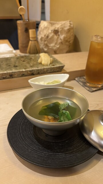 雲丹と鮑のお吸い物の澄んだ旨みと、