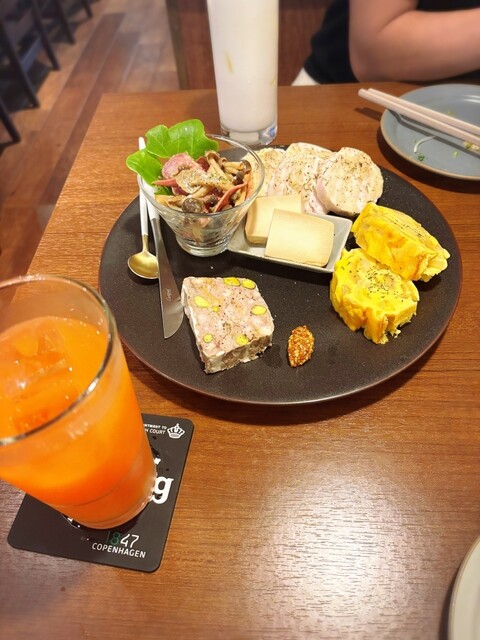 ローストビーフに、アオサと牡蠣のアヒージョ、生ハムサラダ、ピザ、前菜?の盛り合わせ、豆腐と明太子の何やらにチーズの盛り合わせ。